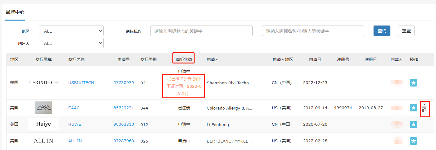 将商标收藏加入品牌中心,随时可以查看商标状态,美国商标已注册的可以直接下载注册证书,后续重要进程可订阅邮件通知,及时掌握商标动态。
